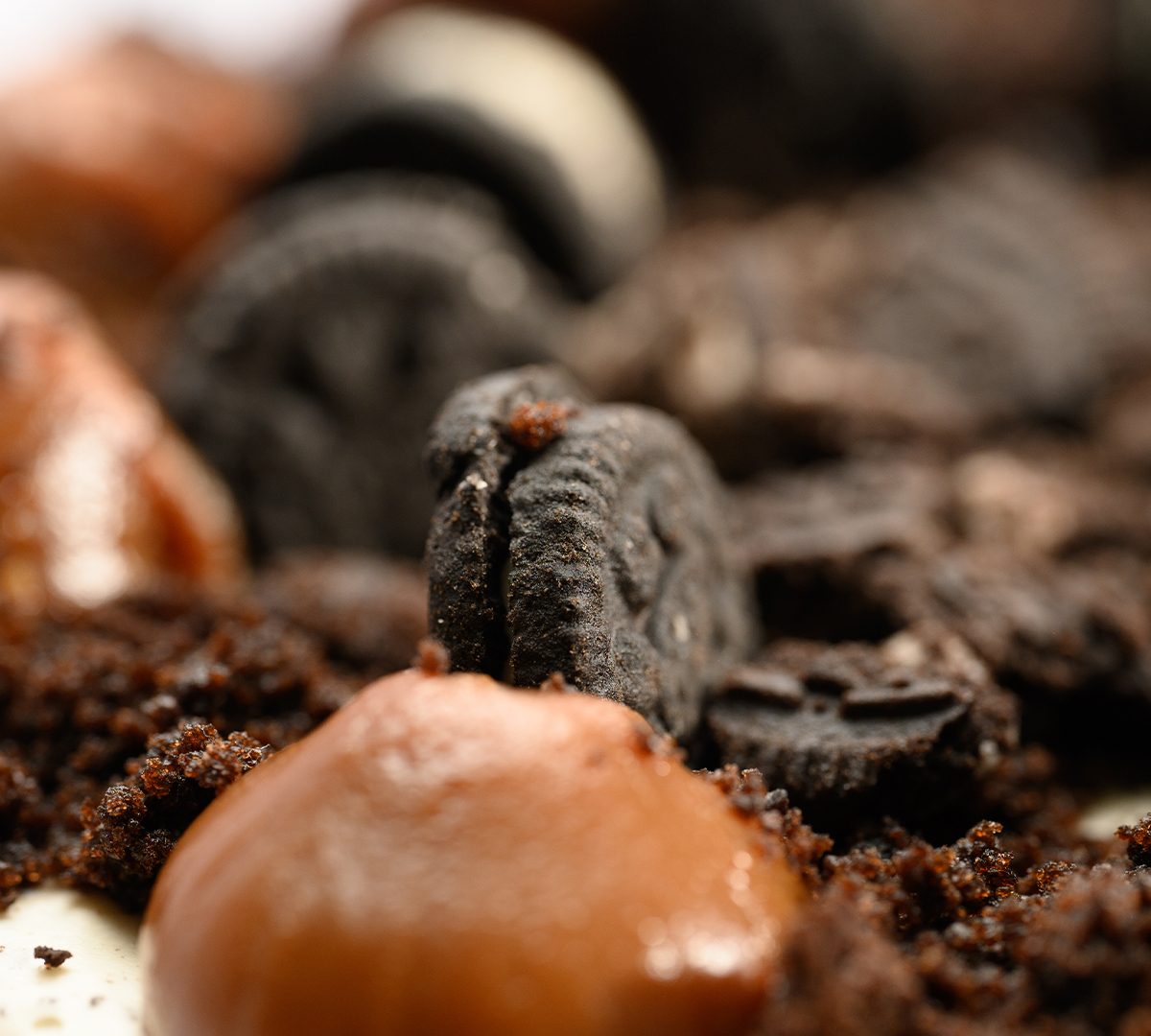 Base de galletitas óreo intercalada con crema con galletitas, dulce de leche y decoración de galletitas óreo mini y picos de dulce de leche